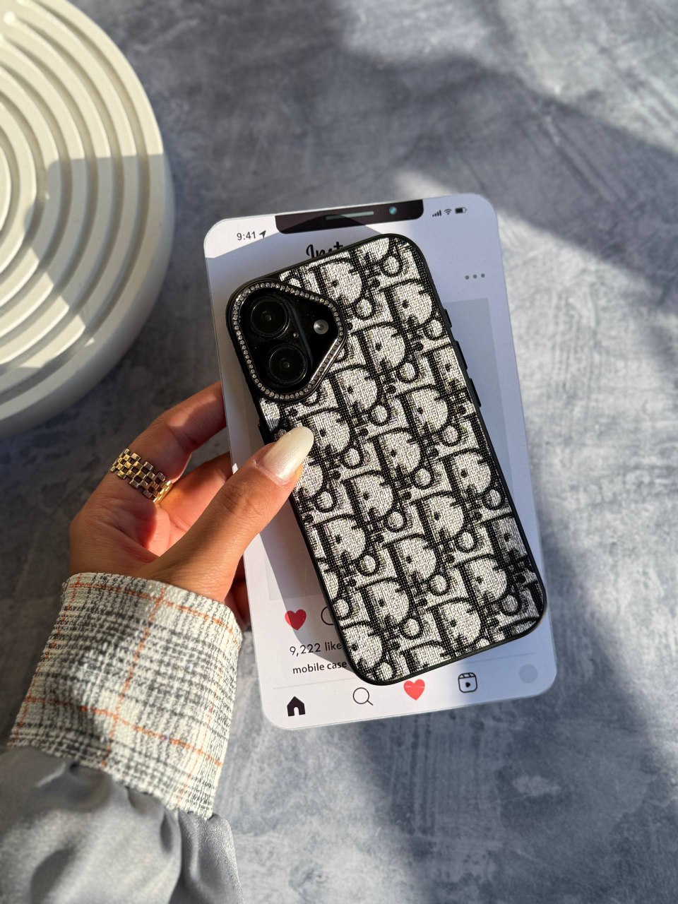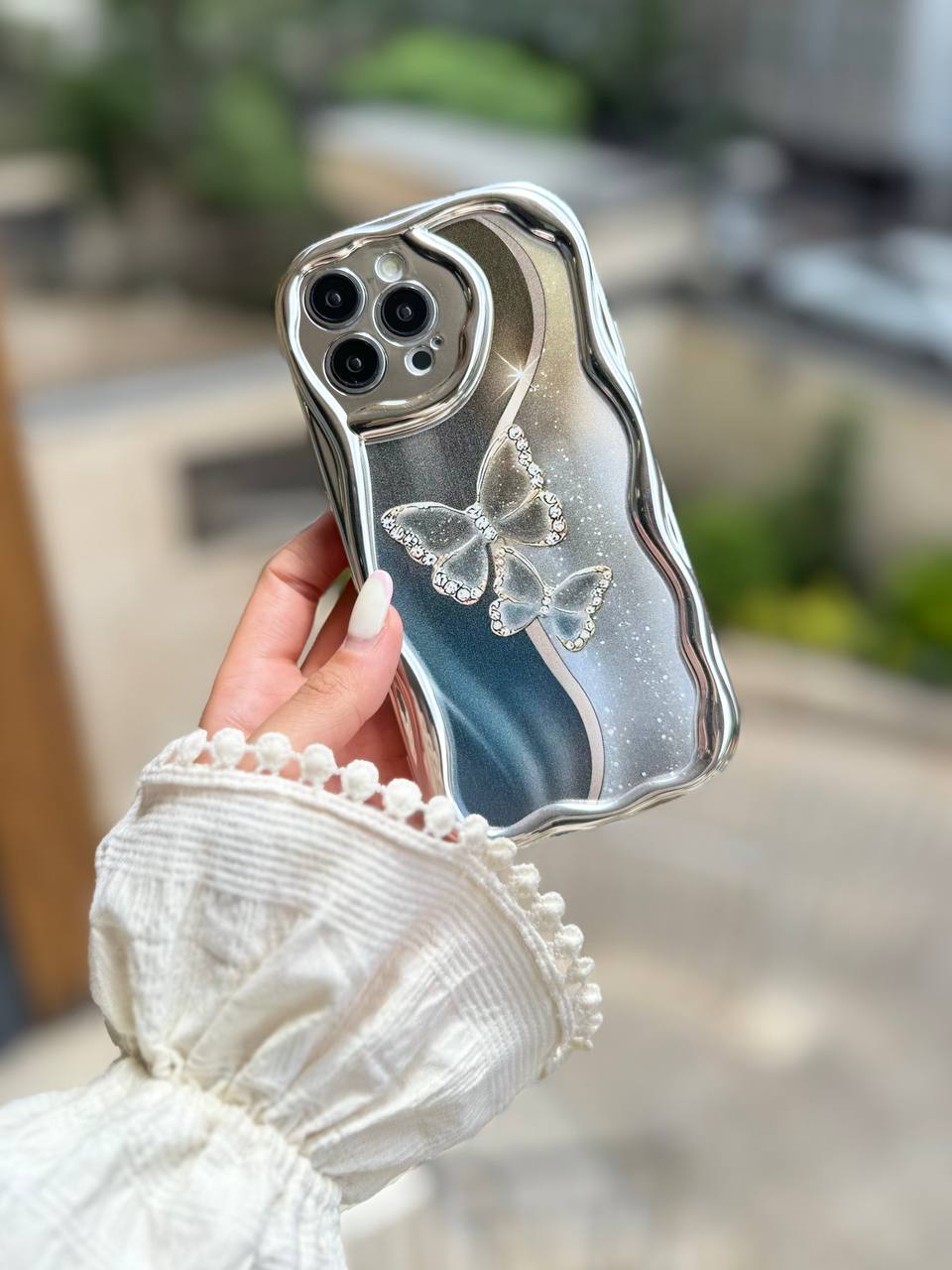 قاب پروانه آینه ای با آویز و محافظ لنز نگین دار