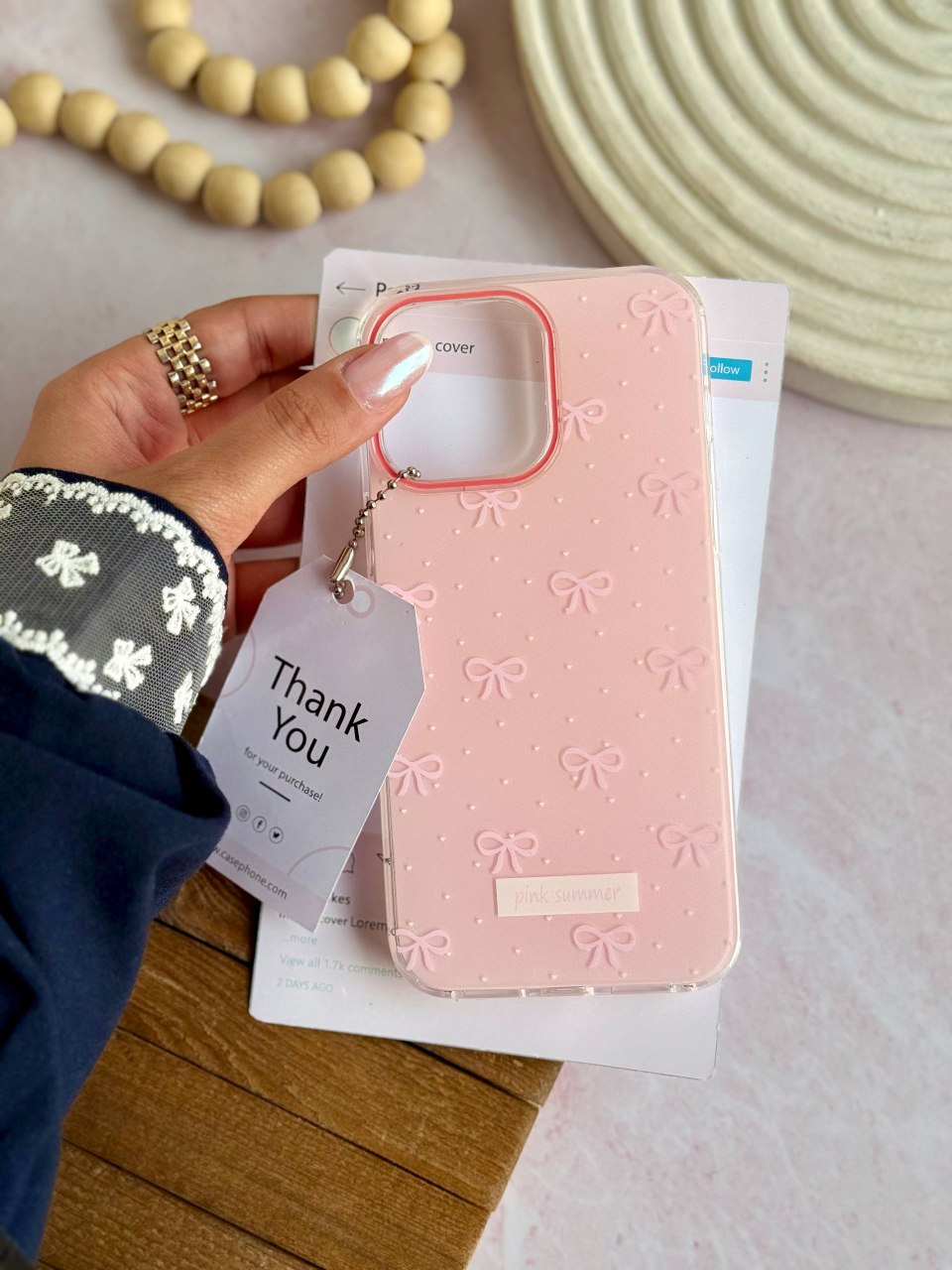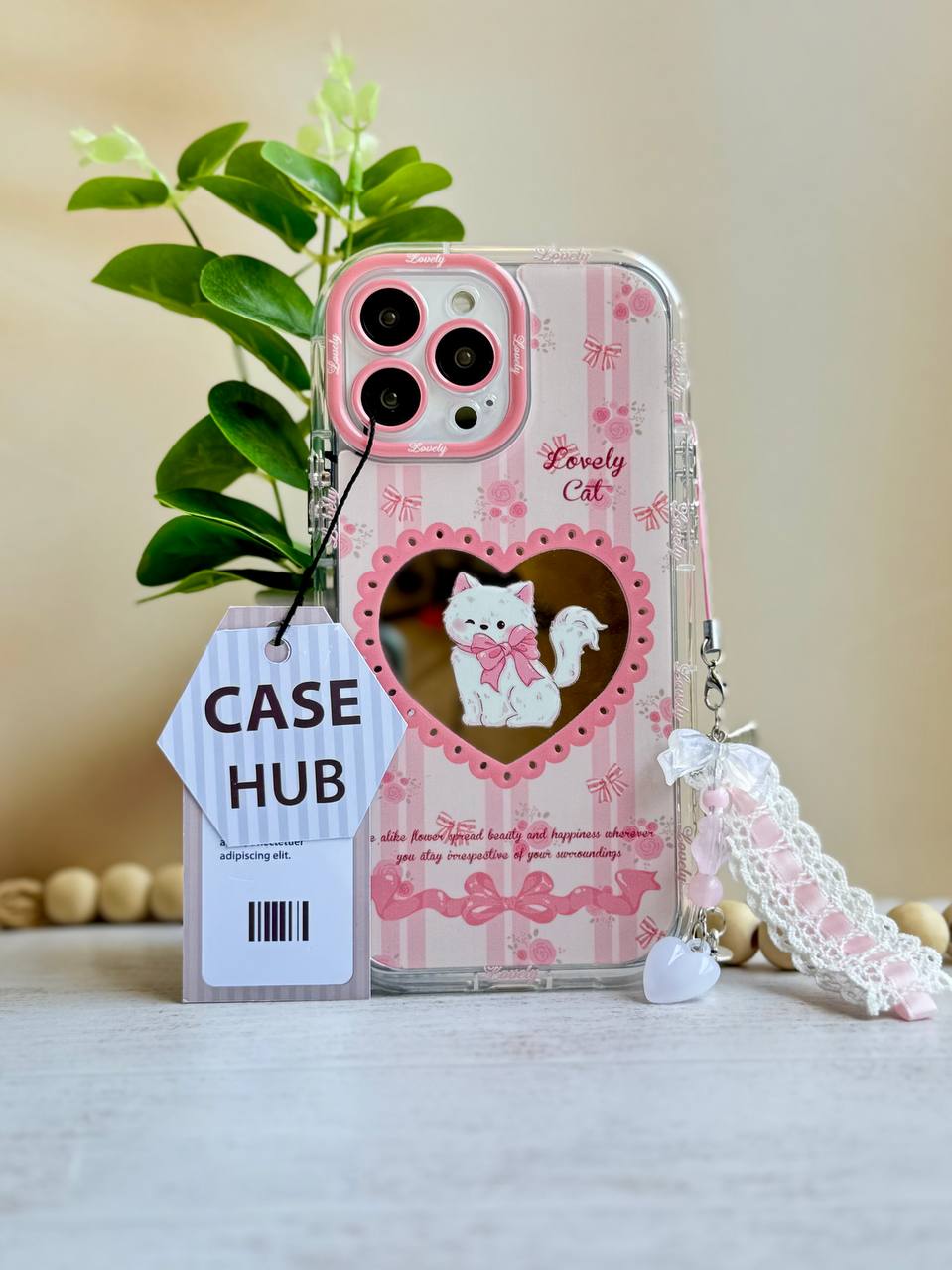 قاب پاپیون مرواریدی آیفون همراه با آویز ست