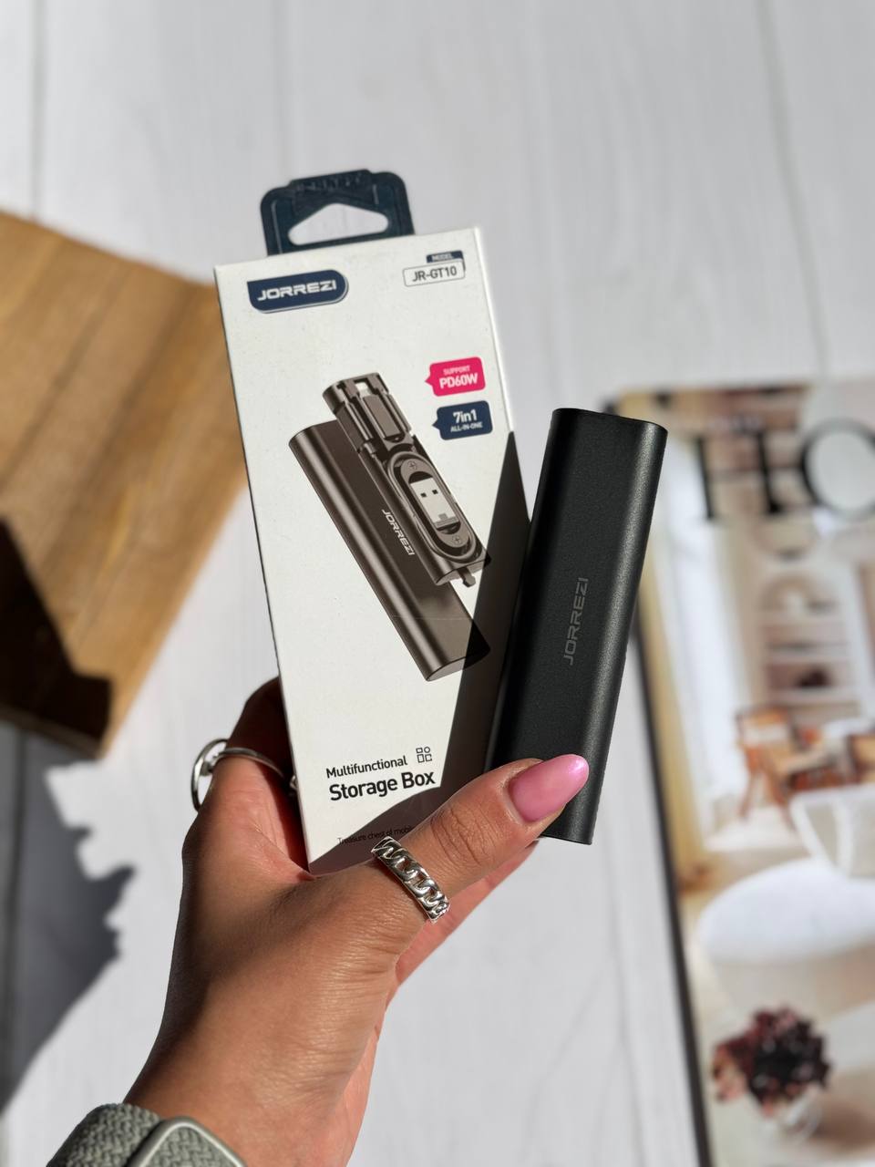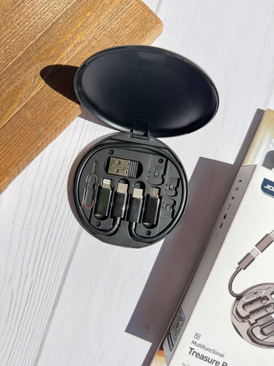پک مسافرتی کابلبرند JORREZIدو مدل : GT09 دایره ایGT10 استوانه ای••محتویات : • سوزن سیم کارت• کابل ۲۵ سانتی متری USB-C To USB-C• تبدیل USB-C to USB• تبدیل USB-C to Lightning• تبدیل USB-C to Micro USB••ویژگی ها :• طراحی مینیمال• اسلات سیم کارت و میکرو اس دی• کیفیت بالا• رنگ مشکی.